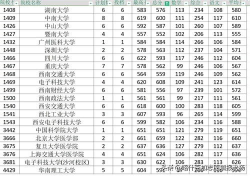 3、最低分(表中总分)数为本院校的最高投档分数