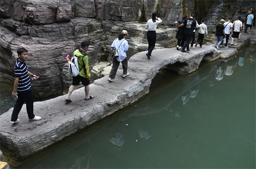 9月17日,游人在云台山景区内游览。 新华社记者 戴翘楚 摄
