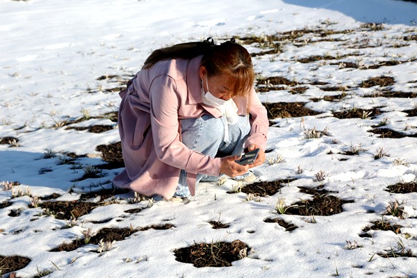 4月上旬,伊犁河谷上的昭苏高原积雪逐渐开始消融,成片的顶冰花在涓涓雪水的滋养下悄然绽放,远远望去像无数盏纤巧的莲花灯,点亮了整个草原。