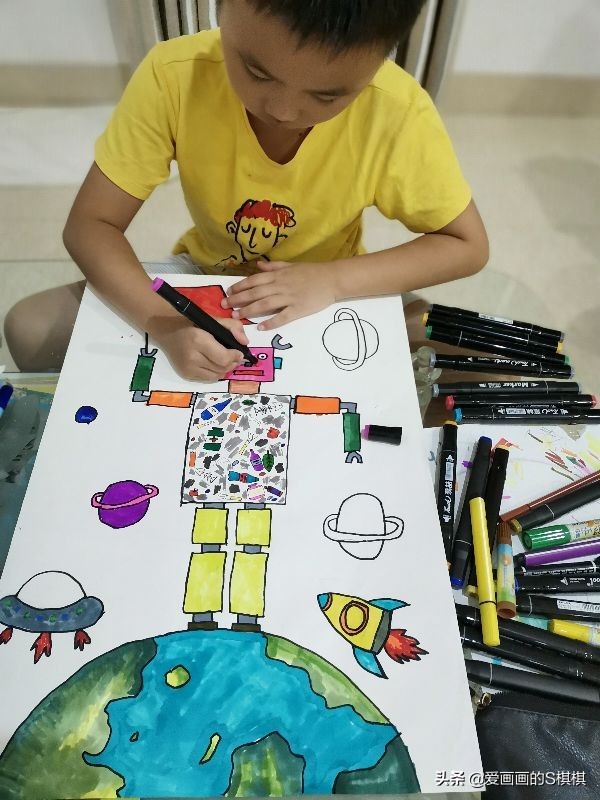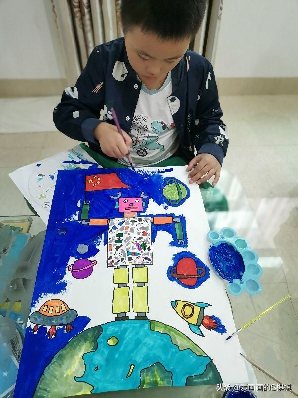 小学生主题绘画《科技主题画》未来科技儿童画范画,彩色颜料画 2025-10-24 13:19 点击: 来源:逸叶汇 摘要:小学生主题绘画《科技主题画》未来科技儿童画范画,彩色颜料画 高年级的孩子可以把机器人画复杂点 用海绵印章随意印些深色和浅色紫色上去 最后用笔甩些白色点点上去(用纸剪出 小学生主题绘画《科技主题画》未来科技儿童画范画,彩色颜料画高年级的孩子可以把机器人画复杂点用海绵印章随意印些深色和浅色紫色上去最后用笔甩些白色点点上去(用纸剪出机器人、国旗和气球的形状盖住) 相关标签: 上一篇:情侣发财头像图,寓意深远 下一篇:这样的十三娘你爱了吗?第五人格红蝶皮肤(十三娘)美图合集