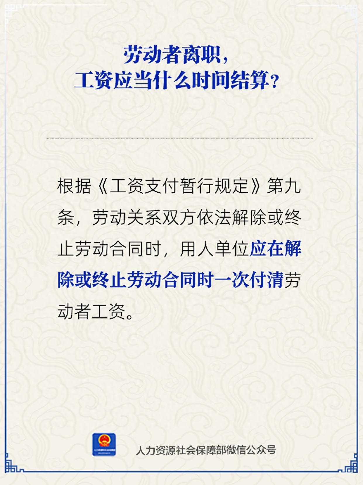 劳动者离职,工资应当什么时间结算?一图了解
