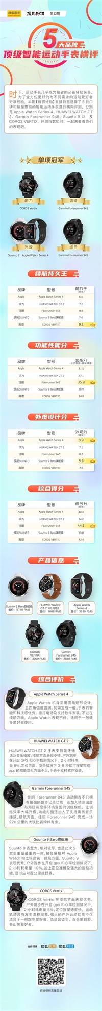 如今,运动手表几乎成为运动爱好者们的标配必备装备。为了全方位为不同需求的网友分享经验,本次搜狐好物直播带来了5款口碑和销量靠前的智能运动手表的横向评测,分别是Apple Watch Series 4、HUAWEI WATCH GT 2、Garmin Forerunner 945、Suunto 9,以及COROS VERTIX。