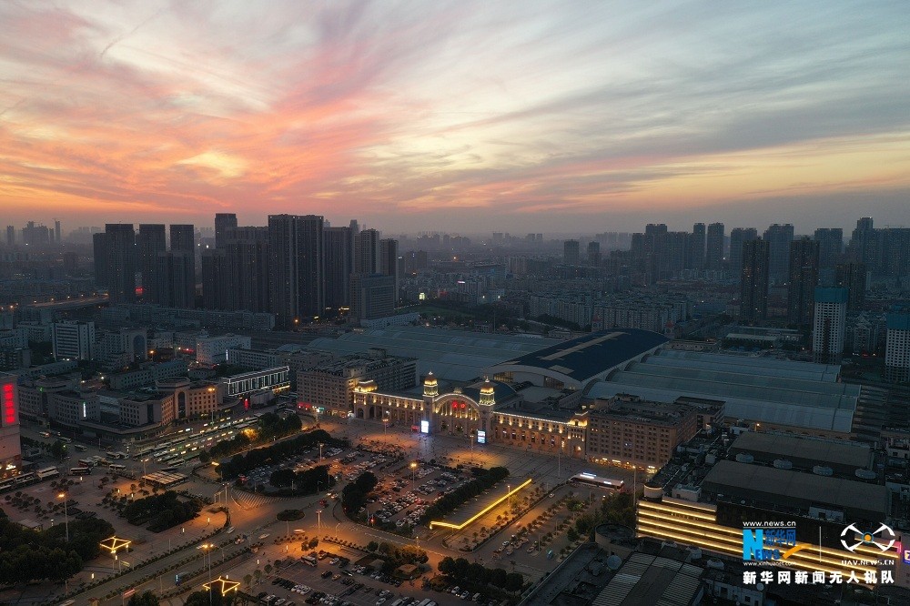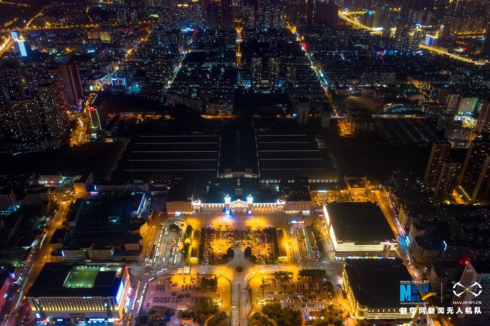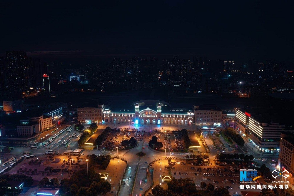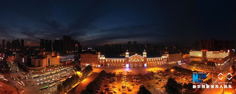 图为汉口火车站。新华网发 彭琦摄 汉口火车站位于武汉市江汉区金家墩,是武汉三大火车站之一,也是目前全国最大的欧式风格火车站。夜幕下的汉口站灯光熠熠、璀璨夺目。(彭琦 吴文华)