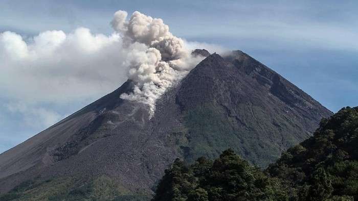 印尼莫拉比火山喷发 喷出浓烟高度达1500米