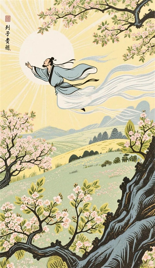 列子修道九年之后,就能御风而行。《述异记》中说,列子常在立春日乘风而游八荒,立秋日就反归“风穴”,风至则草木皆生,去则草木皆落。《吕氏春秋》说:“子列子贵虚”。他认为“至人之用心若镜,不将不迎,应而不藏,故能胜物而不伤”。