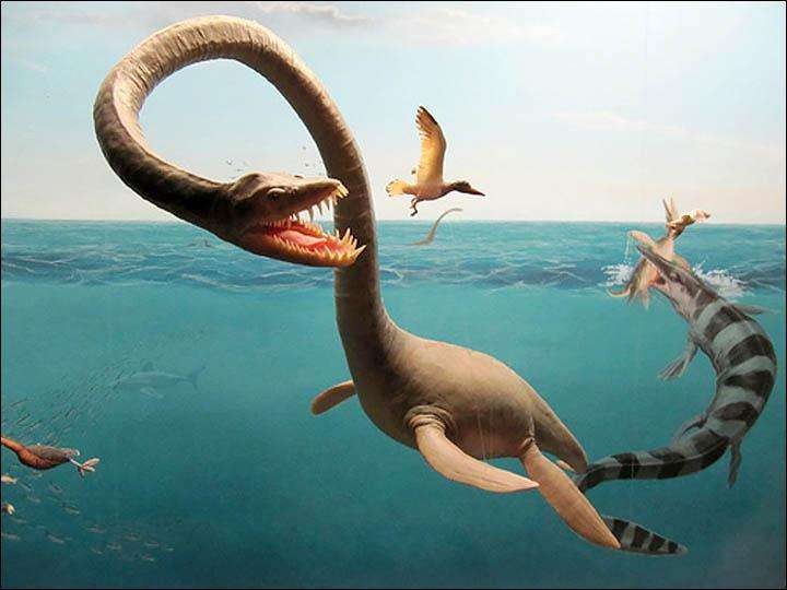 滑齿龙长长的脖子好像蛇身与蛇头,因此也叫“蛇颈龙”。