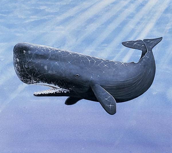抹香鲸的体长长达18米,成年体重超过50吨,最特别的就是它那巨大的头颅,占身体的1/3,可以说是地球上已知生物最大的头部。