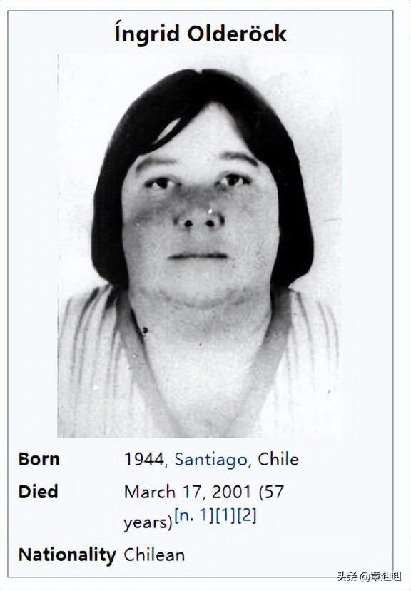 提到本短片的主人公——英格丽·费利西塔斯·奥德洛克·本哈德(1944-2001年3月17日),更广为人知的名字是“带狗的女人”,作为智利和拉丁美洲的第一位女跳伞运动员,她还拥有骑马和训狗方面的特殊才能,滑雪、登山都很厉害,而且还拥有柔道蓝带,是杰出的射击专家,如果放在和平年代,应该是军队中的杰出女性吧?但是,在1970年年代中期,作为DINA的特工,她则是臭名昭著的女魔头。
