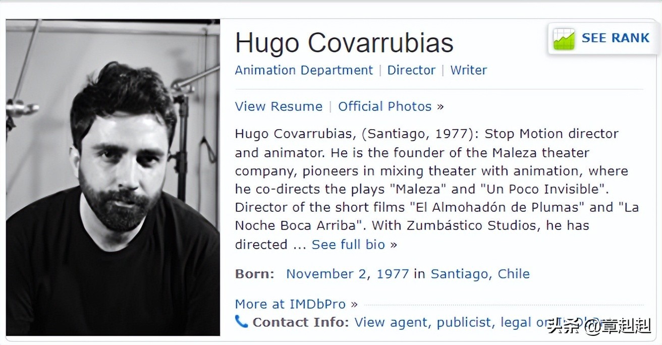 回归到动画片本身,导演雨果·科瓦鲁比亚斯Hugo Covarrubias 从有构思到完成制作这部短短的只有16分钟的电影,其实用了整整4年的时间。
