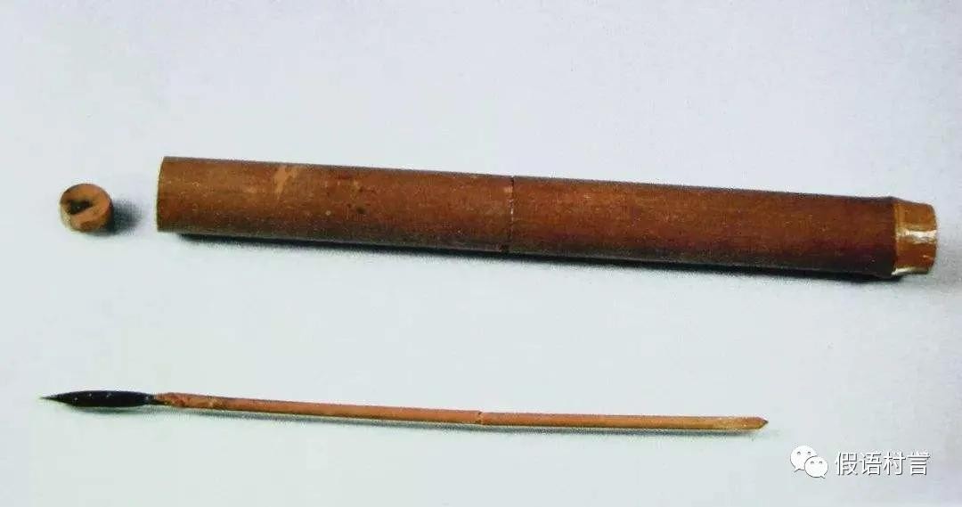 在北室的清理中,人们还发现了一根小小的竹管,打开后竟然惊喜的发现了里面竟然放置了一支毛笔!这根竹管实际是个笔套。这是中国发现的最早的带套毛笔,堪称中国第一支出土毛笔!