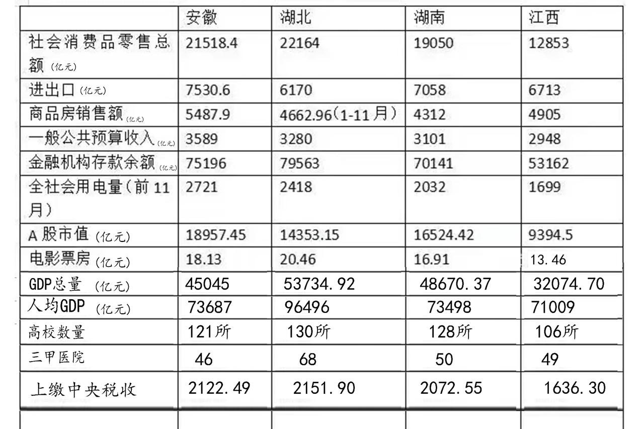 对比中部四省,武汉经济最好,但进出口不如安徽、湖南。