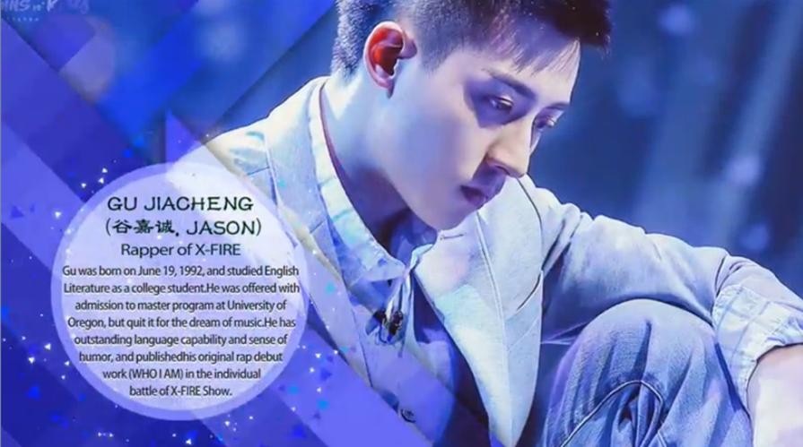 谷嘉诚:X-FIRE门面与RAP担当,金句王。1992年6月19日出生于云南昆明。带着“换一条路走走”的冒险精神,他放弃了美国名校的研究生录取,踏上了音乐与舞台之路。英语专业出身的他,有着极强的语言天赋和幽默感,在赛时的RAP担当对抗中,发布了自己的首曲RAP原创作品《WHO I AM》,广受好评。