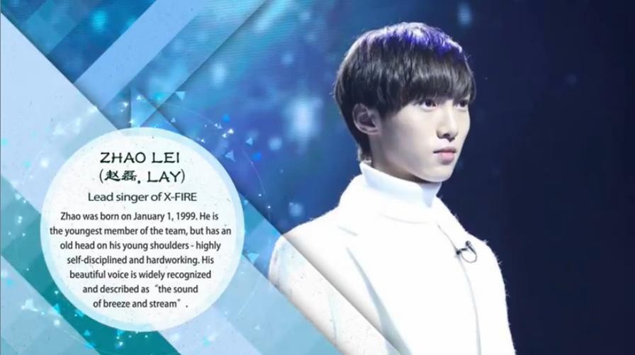 赵磊:X-FIRE主唱担当,温雅的灵魂歌者。1999年1月1日出生于四川成都。虽是团队内最小成员,却成熟稳重,极为自律刻苦。文、艺双修。喜阅读、喜香薰的他,拥有干净纯粹、安定人心的气质,和清澈优美的歌声,在赛时的主唱担当对战中,一曲《岁月轻狂》让蔡国庆老师都赞叹不已,声称16岁的他比自己26岁时唱得还要好听。而“水一般的少年,风一般的歌”也成为他的真实写照。