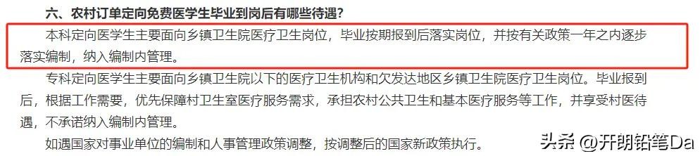 定向免费医学生的前景待遇如何?6年后还有编制吗?