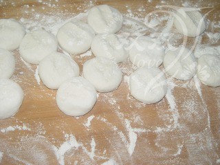 7. 搓条,揪成小面剂,撒干粉,按压。