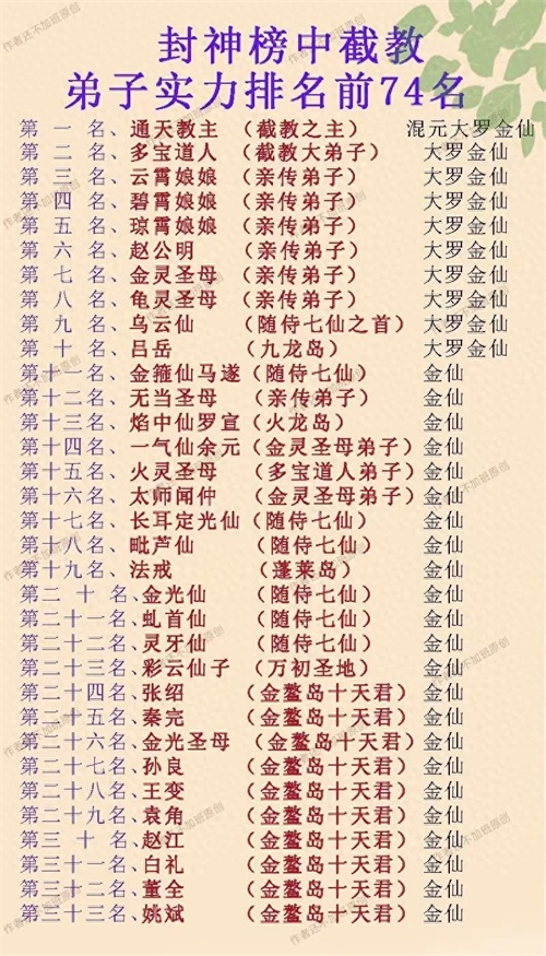 一张图看清《封神演义》中所有截教弟子74人实力境界排名介绍