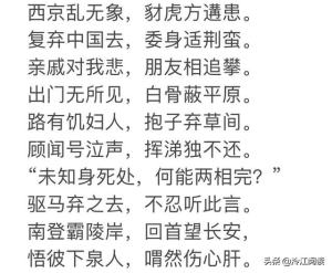 王粲《七哀诗》的第一首,描写其随汉献帝迁都长安是什么,董卓死后,汉献帝初平三年(192) 避李催、郭汜之乱,天下共三分月色,从长安南下荆襄道中的见闻和感受: