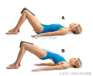 仰卧于垫子上,屈髋屈膝,然后缓慢抬起臀部至膝关节、髋关节、躯干和肩关节处于一条直线上,每次动作保持5-10秒,一组10次,一天2组。