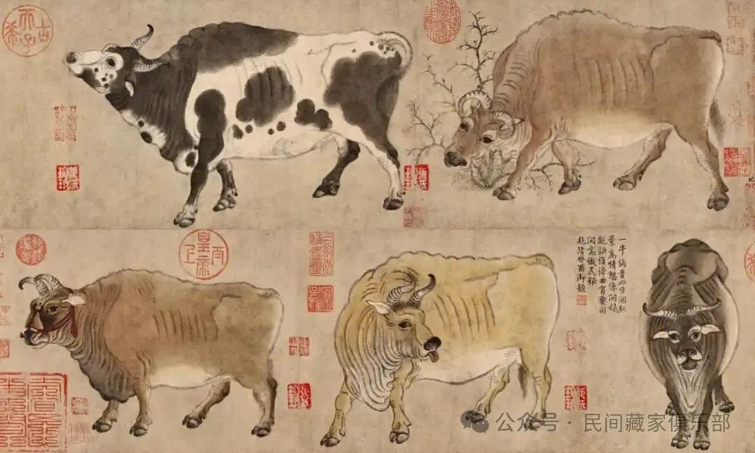 当周总理特批从香港购回时,画上还留着刺刀的划痕。如今展卷观之,五头唐牛依然带着盛唐的浑厚气息。