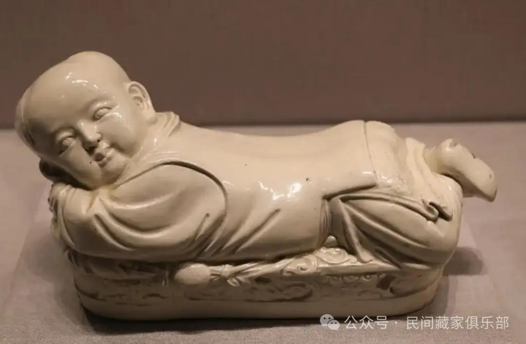 定窑孩儿枕的曲线里藏着宋人的生活美学。台北故宫收藏的这件瓷枕,孩童脊背的弧度符合人体工学,衣纹褶皱自然如风吹涟漪。