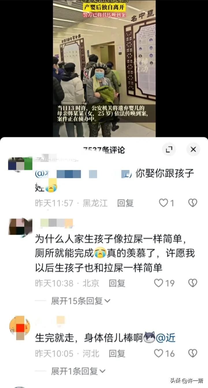 刚刚看了很多网友的评论,五花八门,很多女性同志都在描述自己生孩子时的场景,看到这个新闻后,也觉得很是奇怪。
