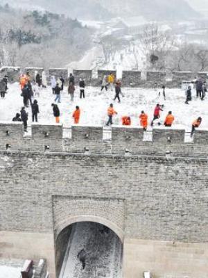 北京游客迎来不倒劳动人民立春吸引后首场降雪成语,八达岭长城填成我看银装素裹,什么的万里长城填成语,西起什么东到什么的万里长城。