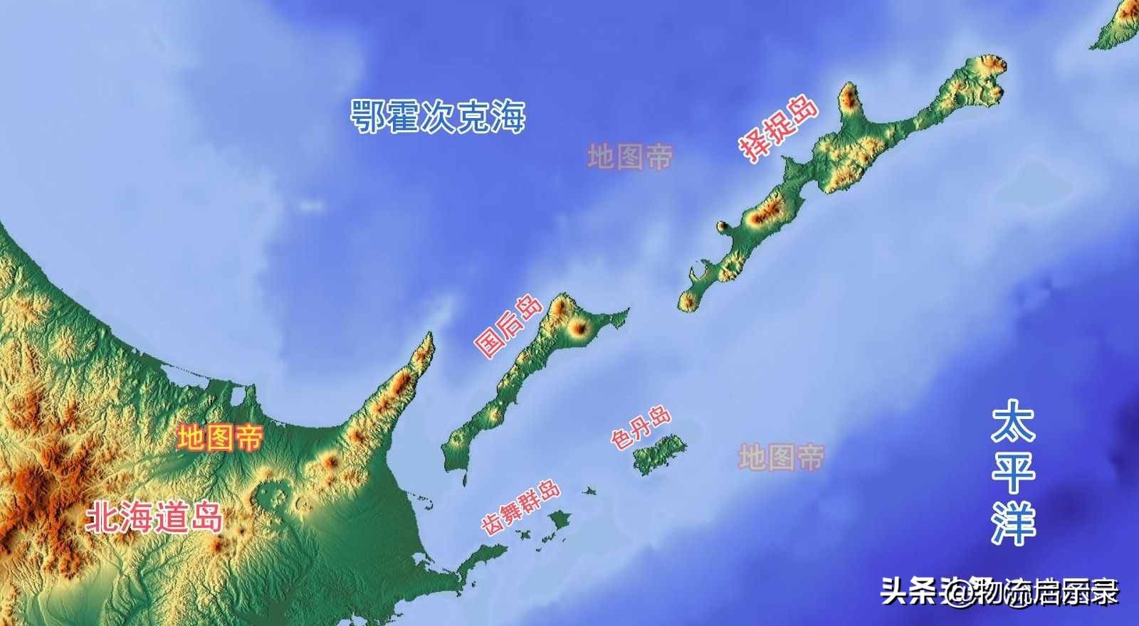 日本称为“北方四岛”,俄罗斯称为“南千岛群岛”(图片来自地图帝,侵删)