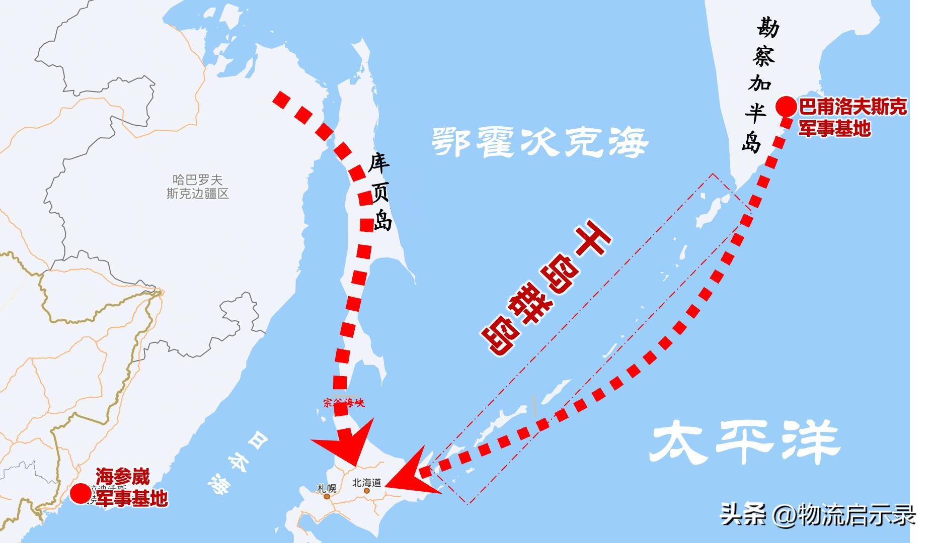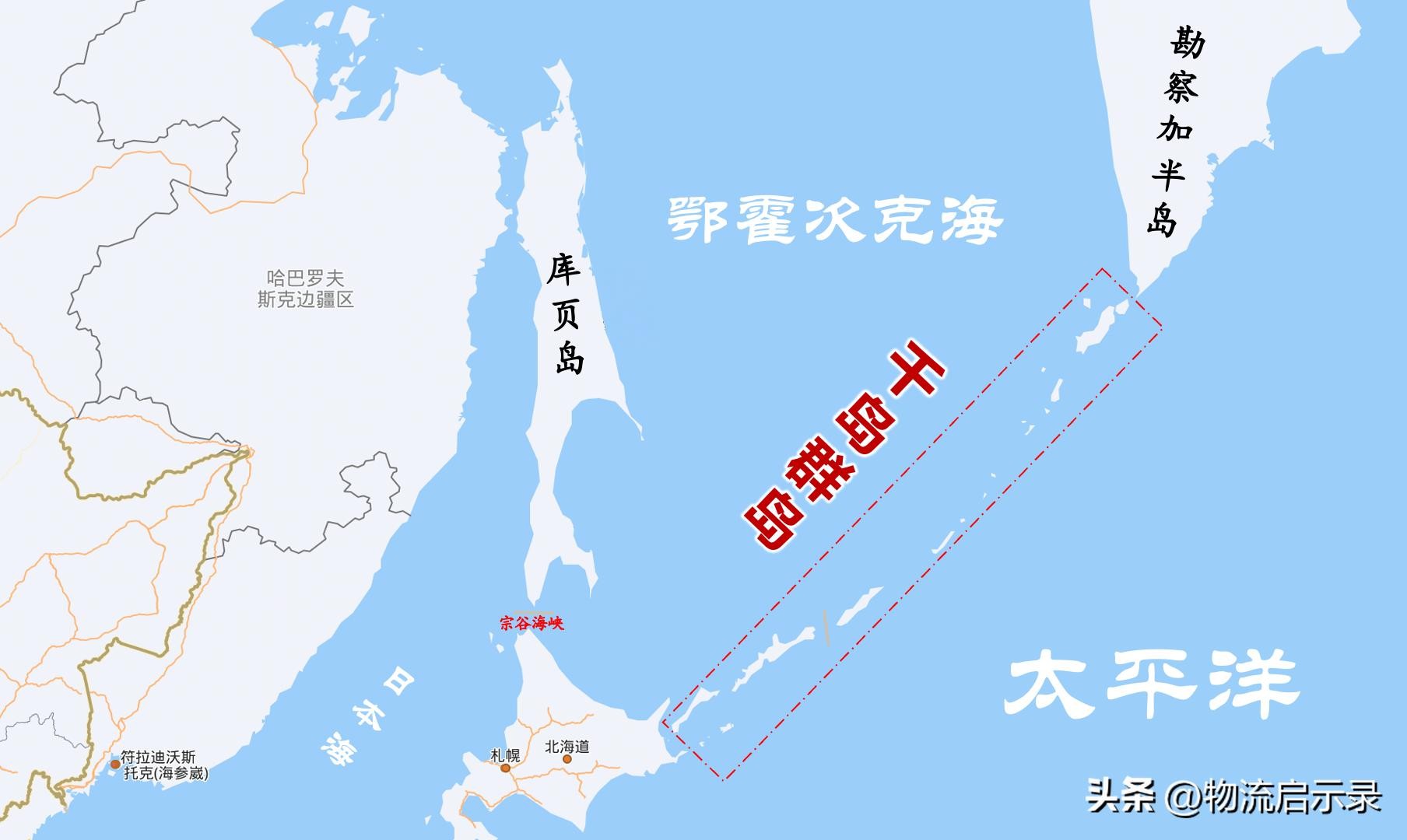 前面说了库页岛,本文开始说千岛群岛。看图: