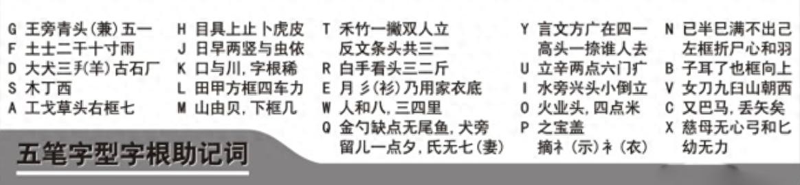 二、五笔字根背诵口诀如何理解记忆?