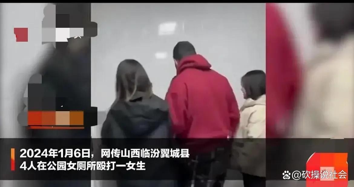 这一事件发生在1月6日,那天阳光明媚,本应是美好的一天,但对于山西临汾的一名女子而言,却是非常可怕的一天。据了解,涉事的三男一女以玩耍为名引诱该女子到九龙公园,然后将她带进公厕实施暴力。从视频中可以看出,这些人的年龄相仿,打人的一方有三名女性和一名男性。他们对该女子进行连续的辱骂、踢打和头部攻击,而被打女子无法还击,只能试图保护自己的头和脸。然而面对人多势众的对手,她无法抵挡。