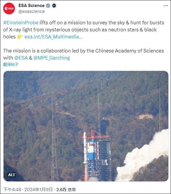 第七件:2024年1月9日,我国在西昌卫星发射中心顺利发射了长征二号丙运载火箭,成功将爱因斯坦探针卫星送入预定轨道,这一发射任务取得了圆满成功。