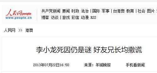 人民网-2013年7月22日-《李小龙死因仍是谜 好友兄长均撒谎》