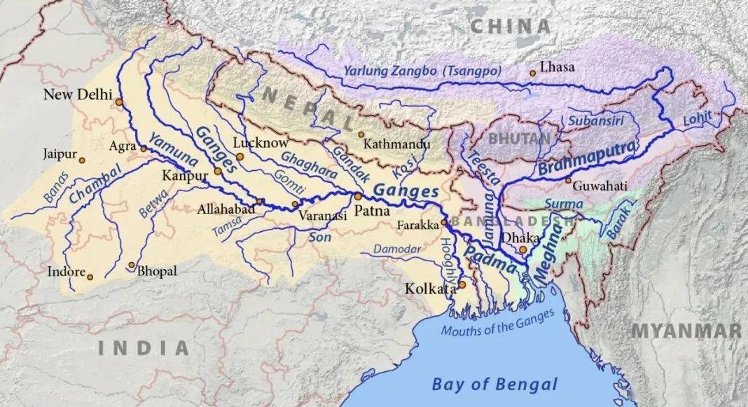 这些支流在印度北部的邦阿拉哈巴德附近汇合,形成了恒河的主干流。恒河最终流入孟加拉湾,流域范围覆盖了印度和孟加拉国的广阔地区。