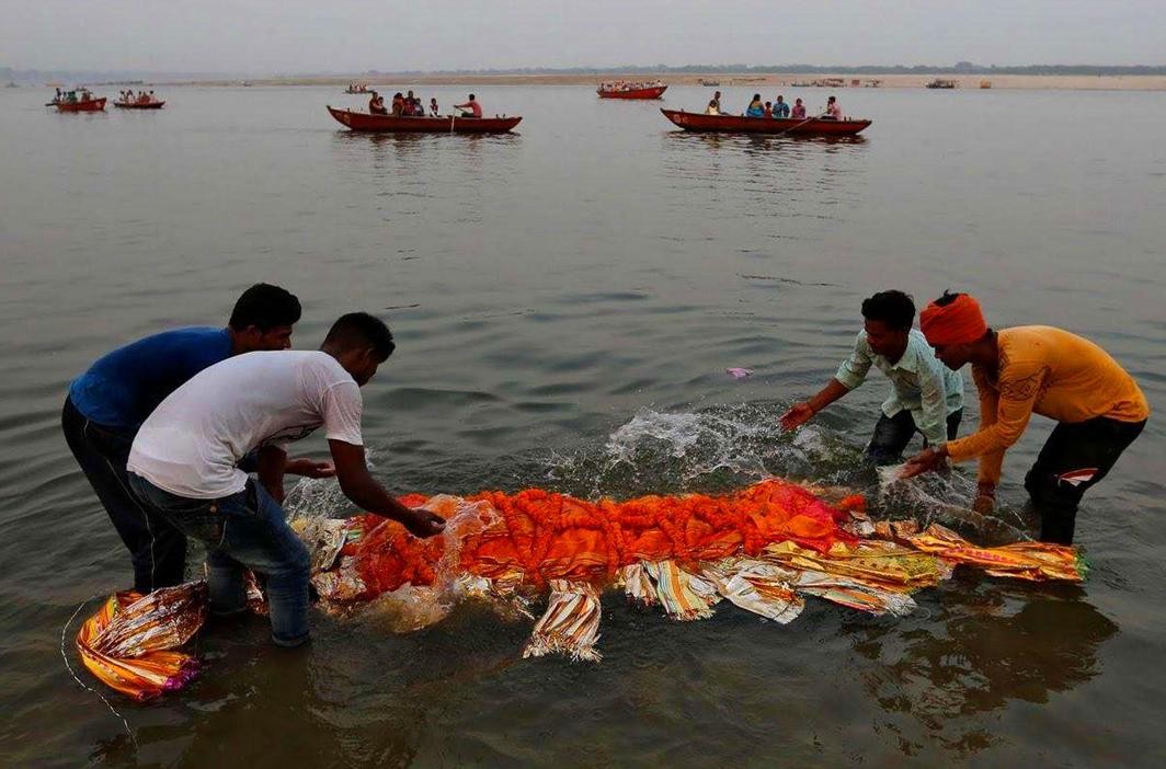 恒河沿岸的城市和村庄经常进行丧葬仪式,尸体被投入恒河,这导致了大量的尸体残骸进入河中。