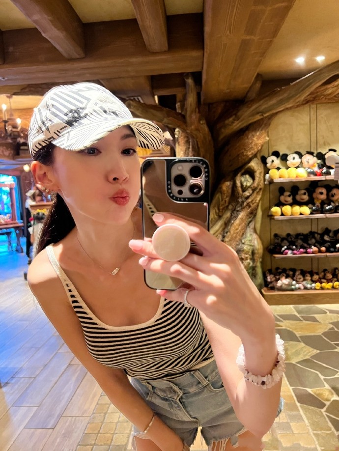 8月14日林志颖的娇妻陈若仪晒出自己在国外旅游的美照,陈若仪带着三个孩子现身日本迪士尼游玩,其中一张是她小时候的美照,陈若仪还发文说:七岁去迪士尼的我。从曝光的画面我们可以看出当时的陈若仪身穿超大的白色短袖搭配小白鞋超级时尚,头上还戴着一个发箍造型非常前卫。