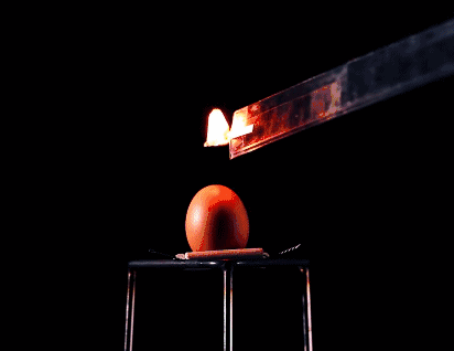 鸡蛋的两头都用钉子打出了小洞,掏空内容物之后洗净晾干,然后盖住上面的小孔,并从下面的小孔向鸡蛋壳里充入氢气,然后再从上面点燃。