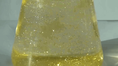 碘化铅的溶解度约为0.08g,溶解度较小,因此我们可以用可溶性的铅盐和碘化钾反应来制备碘化铅,生成的碘化铅沉淀亮黄色闪闪发光,就像在下“黄金”雨一般,非常漂亮。