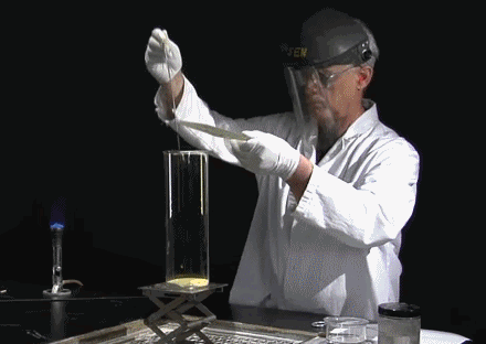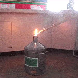 这个实验也提醒我们,可燃气体的操作必须要谨慎进行。瓶中的下沉火焰, 这种效果是用醇蒸汽之类密度较大的可燃气体实现的。