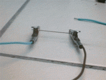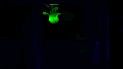 下面展示的就是一个鲁米诺氨气喷泉:“喷泉”的倒吸依然由氨气溶解引发,但下方的两条管子分别接上了碱性鲁米诺溶液和氧化剂次氯酸钠溶液,两种溶液被吸进瓶中混合引发反应,就让喷泉发出了漂亮的蓝光。