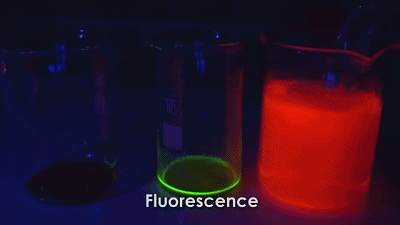 大多数情况下,发光波长比吸收波长较长,能量更低。荧光属于冷光,颜色为蓝、绿、红和黄色。