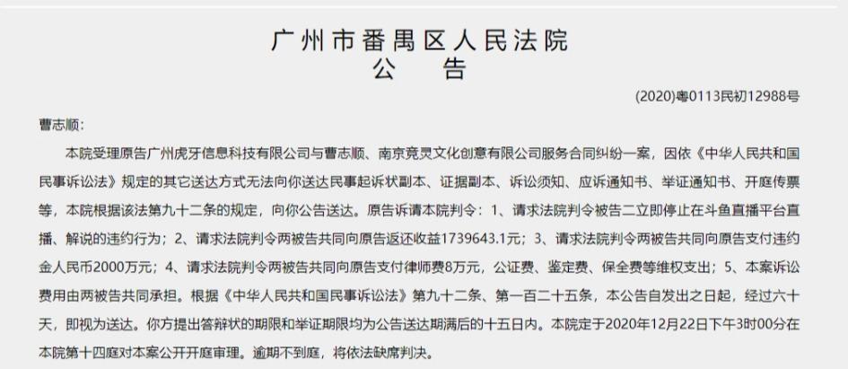 久诚和Hero被虎牙起诉,赔偿2000万,首发没了,还得赔钱