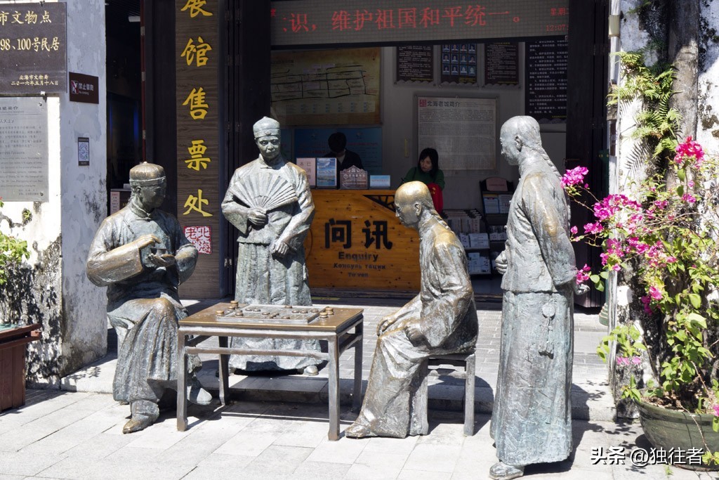 文化馆内的流光浮影展厅,通过3D影片的放映,系统地向游客全面介绍北海老城的形成及发展。同时老街上还有很多组铜雕塑,这些生动的雕塑造型,每一座雕塑都蕴含了一个故事,值得人们好好品味。