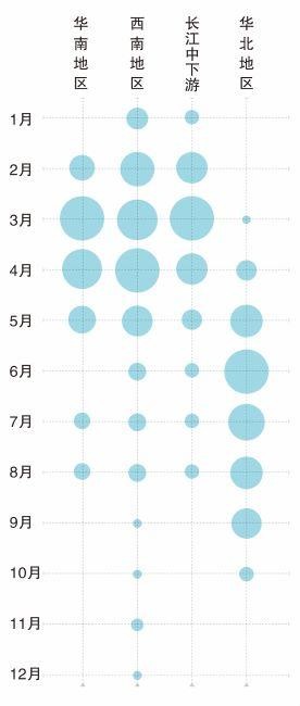 图解广东冰雹两大特征:多在3到5月份,粤北多沿海少