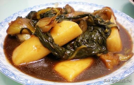 能把菜㸆出浓郁鲜美的味道来,靠的是火候和调味汁。简单的酱油、白糖、盐却能让烤菜软而不烂,配合软糯入味的年糕,真是好吃极了,是很多宁波人记忆中的妈妈味道。