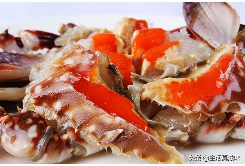 选用优质的东海梭子蟹,腌制后膏红味鲜,咸咪咪的特别下饭开胃。宁波人的酒席上,没有一道红膏呛蟹,总归是欠缺了一点什么。