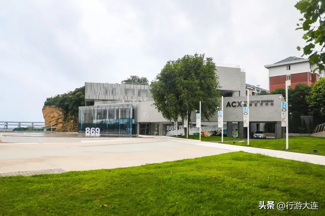 从星海公园西南侧闲逛出来,ACX艺术中心这栋海边建筑就出现在眼前。它平时是设计学校,不对外开放,只有举办活动或展览时才对外开放,已经俨然成为大连看展新地标。
