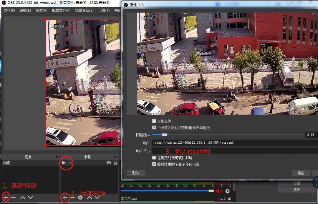 这里需要明白网络摄像机的RTSP地址格式,各个方案的网络摄像机RTSP地址格式都不同,比如海康威的RTSP地址格式为:rtsp://username:password@