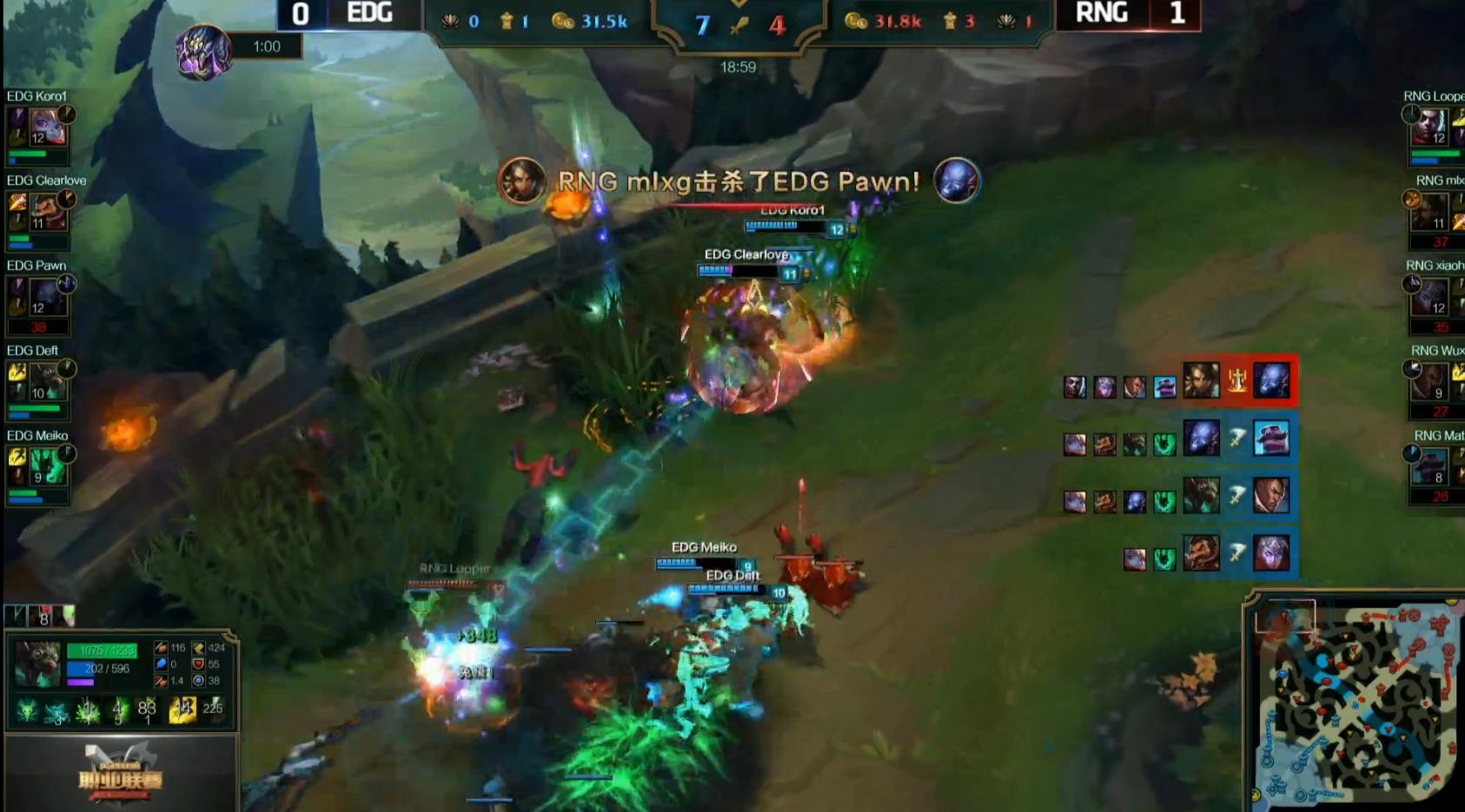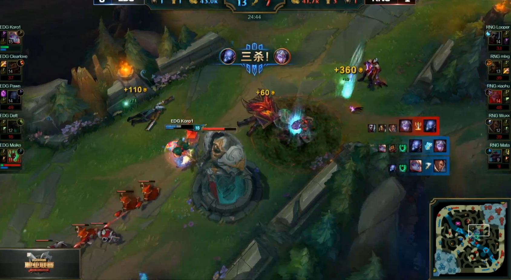 40分钟EDG抓死RNG豹女成功一波,扳回一局。