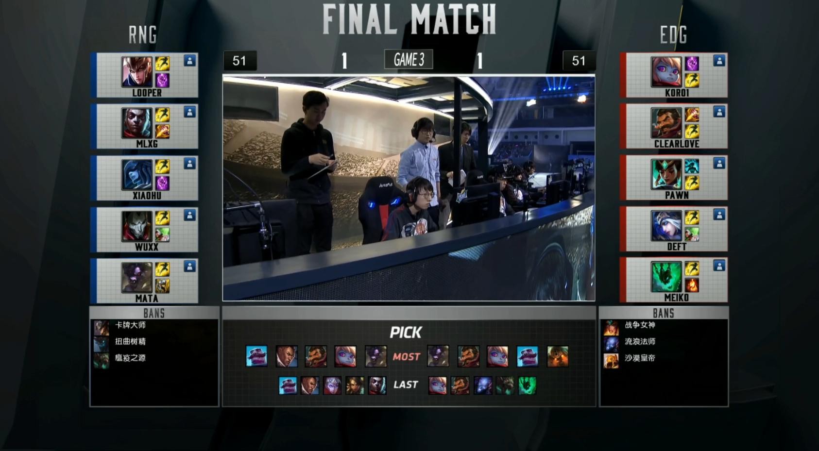 此时RNG VS EDG的比分为1:0