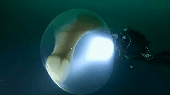 潜水员与大鱿鱼的卵,这成年了是有多大,不会是传说的大王乌贼吧?